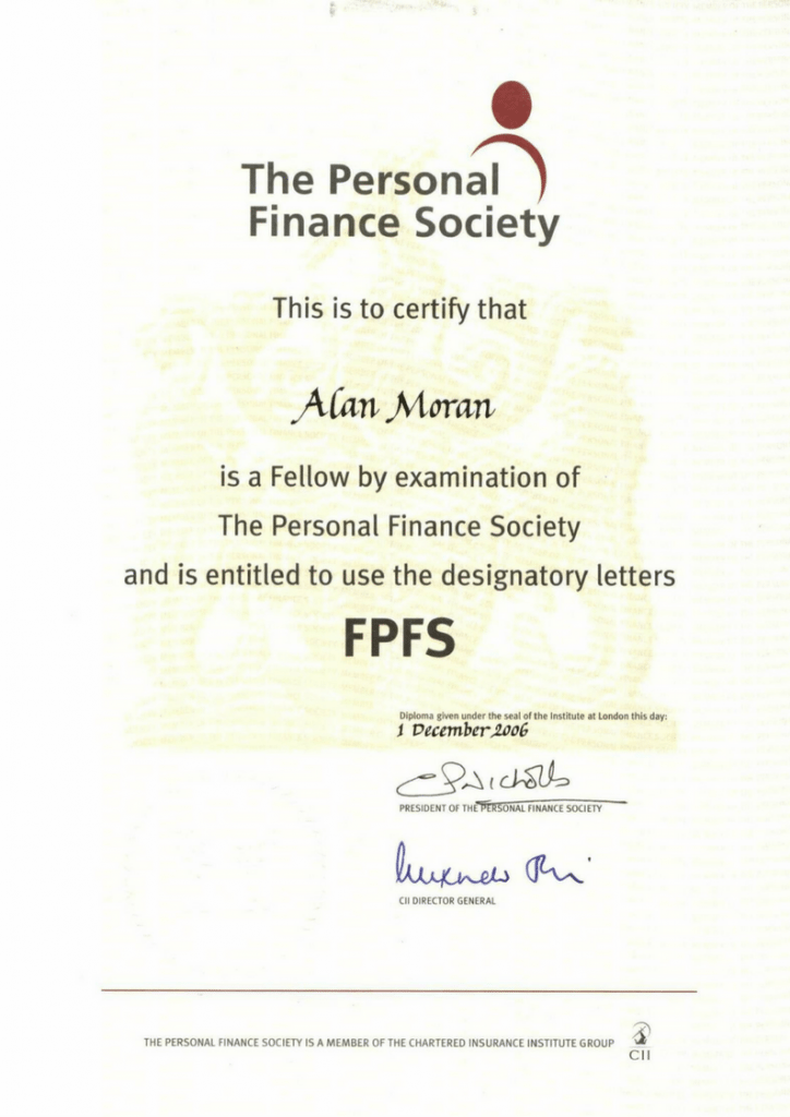 I was introduced to Alan Moran in 1999. I was juggling my finances just to keep afloat and was wary of taking outside advice. A close friend of mine recommended Alan as a reliable and honest adviser who would take great care in choosing the right path to get my financial affairs on track. Trusting their judgement, I arranged to meet Alan. I was treated with the utmost care, given time to consider the guidance that Alan provided and never pushed into taking on financial services. Meeting Alan and acting upon his sound advice has improved my life no end. Even on a limited income, prudent planning has enabled me to save for annual holidays and even cope with the occasional unexpected expense as well as keep up to date with all of my bills. I count Alan among my friends and have recommended him to both my sister and my parents. He really is the genuine article and I cannot thank him enough for all he did for me.